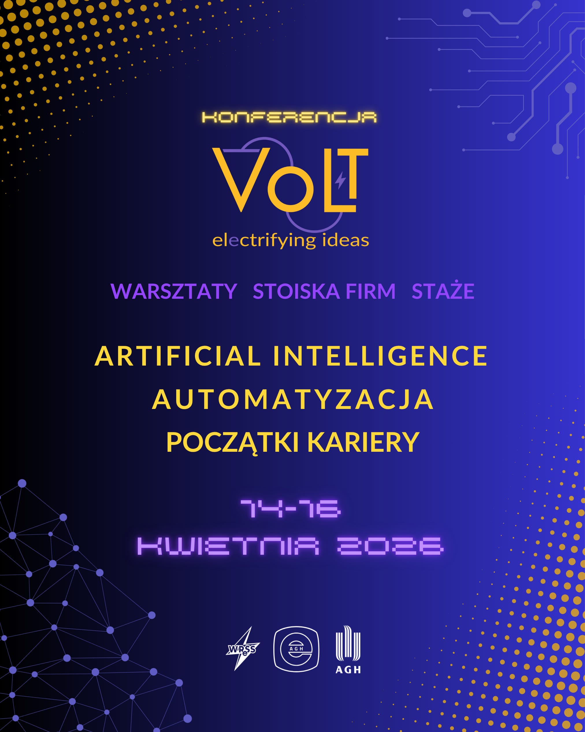 14-16 kwietnia na Akademii Górniczo-Hutniczej im. Stanisława Staszica w Krakowie odbędzie się Konferencja naukowa VOLT poświęcona AI oraz automatyzacji, organizowana przez Wydziałową Radę Samorządu Studentów Wydziału Elektrotechniki, Automatyki, Informatyki i Inżynierii Biomedycznej AGH.